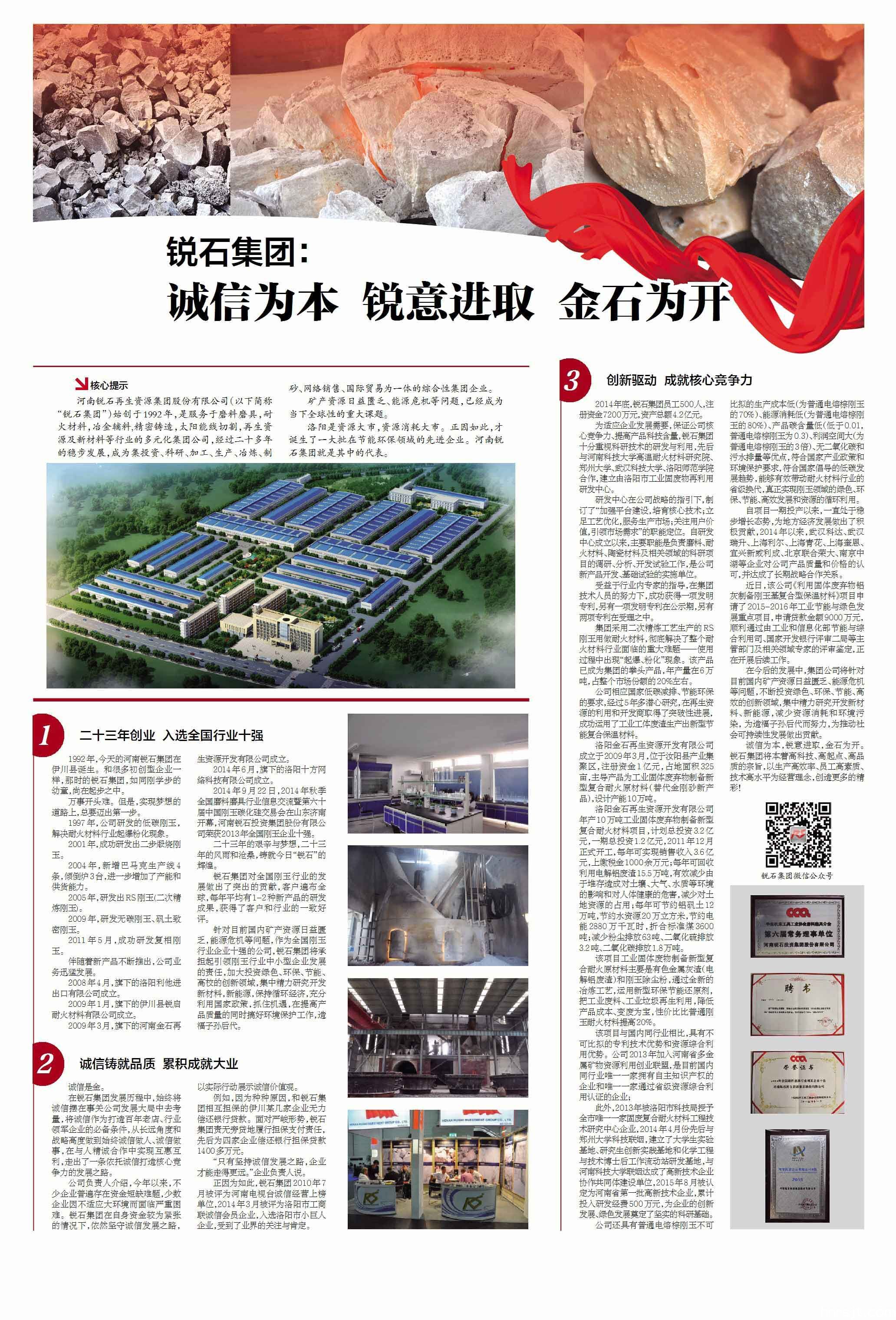 近日,洛陽日報社記者對銳石集團進行了題為:銳石集團:誠信為本 銳意進取 金石為開 的專版報道,并刊登在1月15日的報紙03專版。