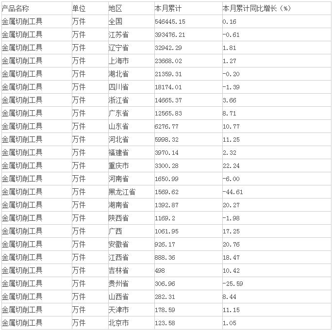 導讀: 研究數據顯示:2015年1-7月生產金屬切削工具54 64 億件,同比增長0 16 %。