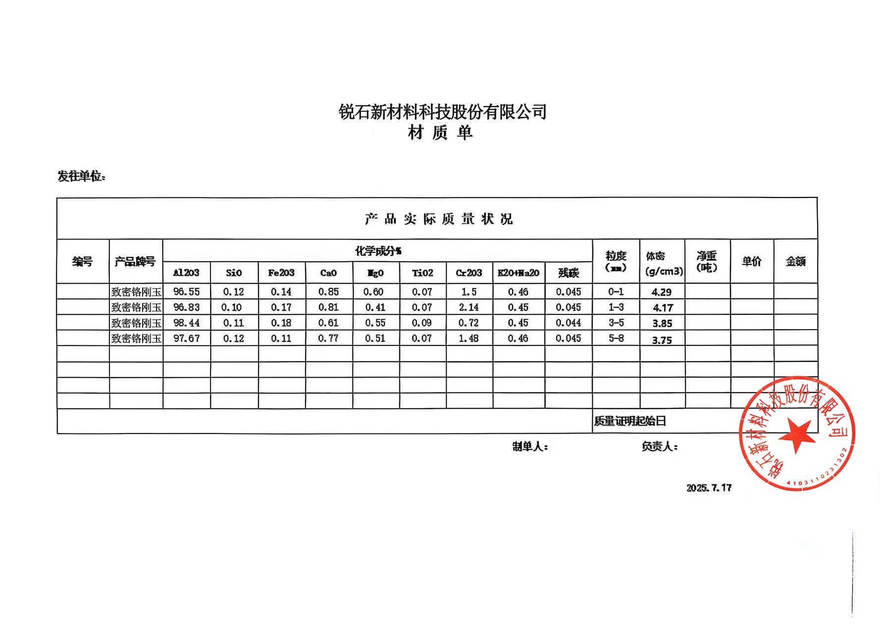 鉻剛玉是以高純氧化鋁(Al?O?≥99%)為基礎,添加1%-3%氧化鉻(Cr?O?)經高溫熔融結晶形成的特種陶瓷材料。其通過Cr³?離子固溶強化α-Al?O?晶格,實現物理化學性能的突破性提升,被譽為“工業(yè)金剛石”。
