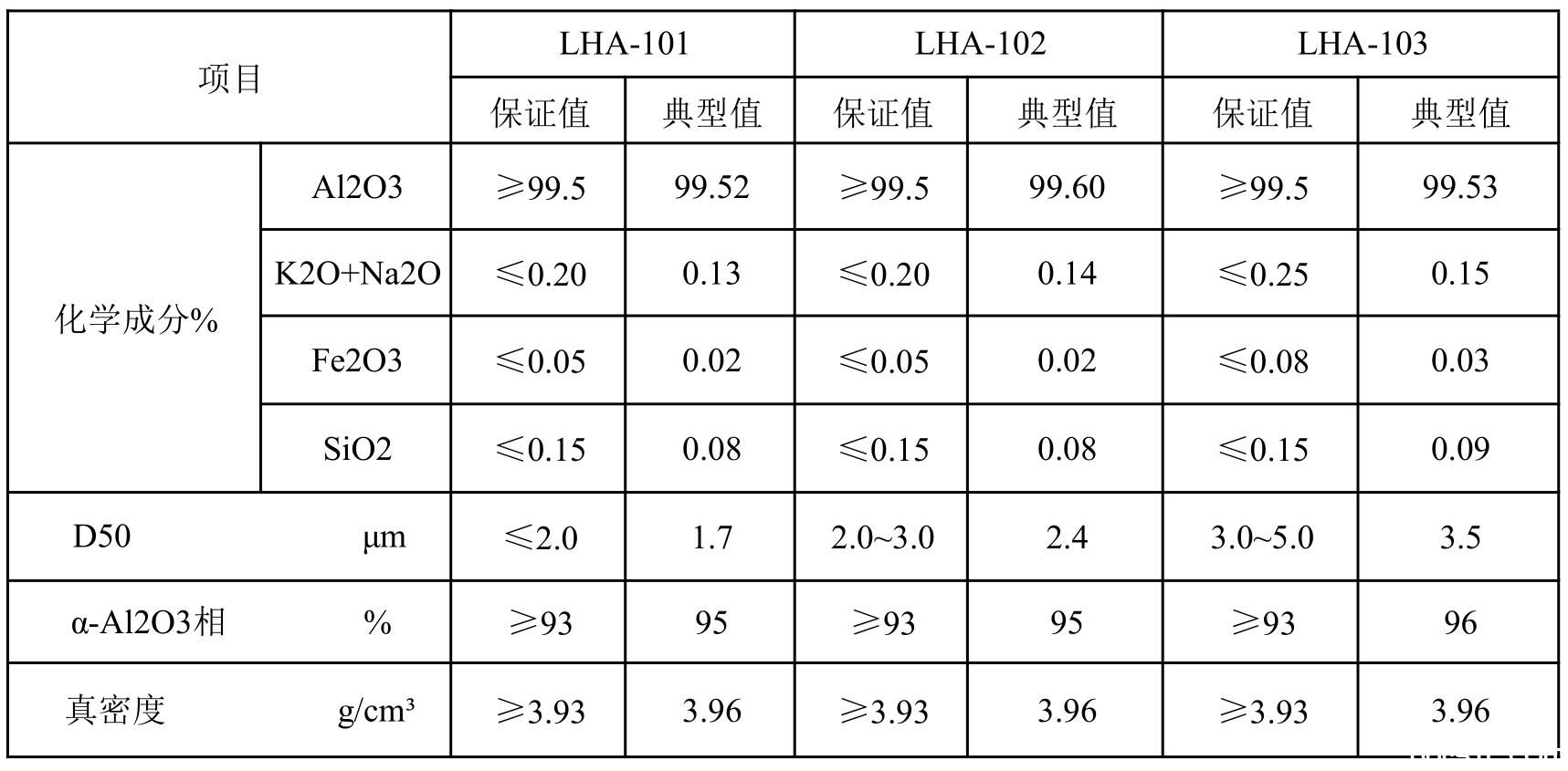 α氧化鋁微粉性能指標(biāo):
