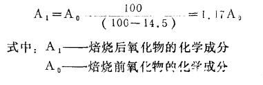 如表l一2所示,礬土平均灼減量為14.5%,焙燒后氧化物成分可以算得: