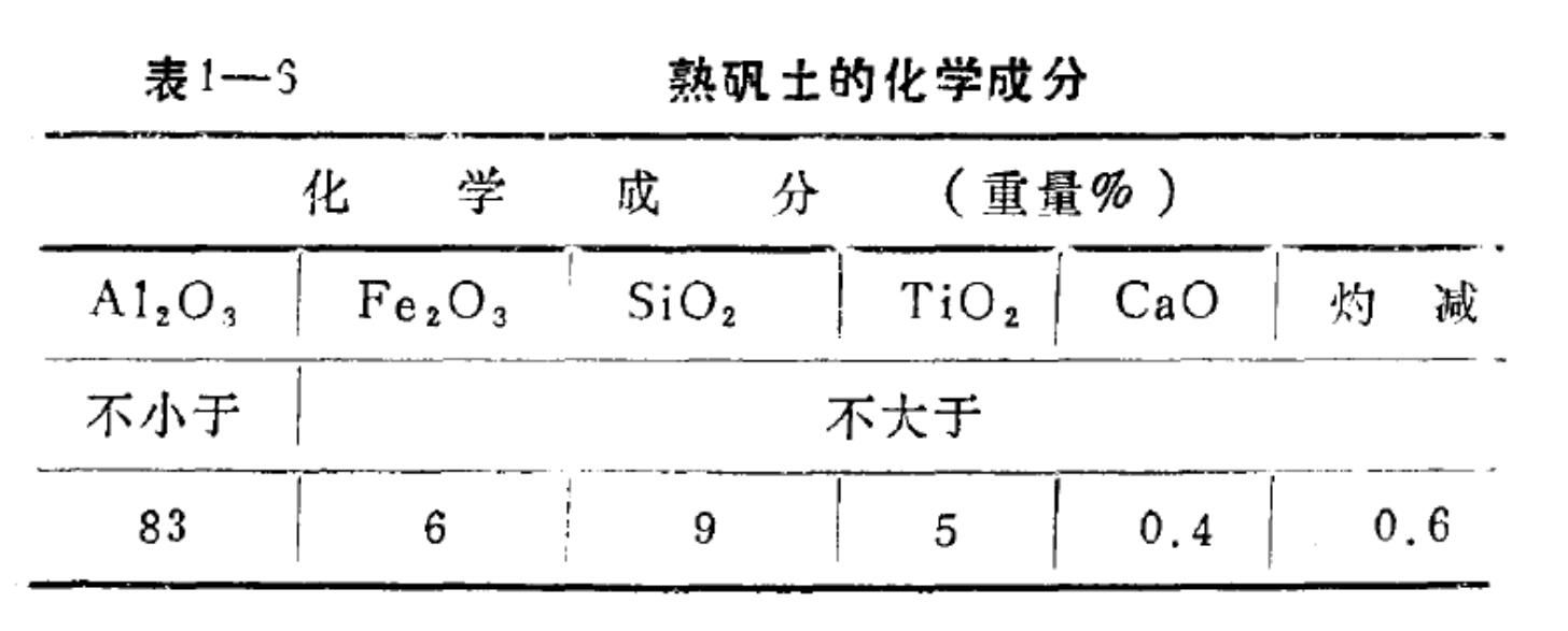 討論結果推薦表1一6礬土質量標準。