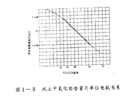 礬土中氧化鋁含量與剛玉冶煉電耗有圖l一3的關系。這種關系僅僅是概念性質的,提示有這種趨向。